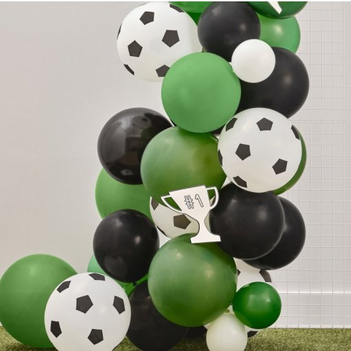 Este arco de balões de futebol é composto por 55 balões de futebol: