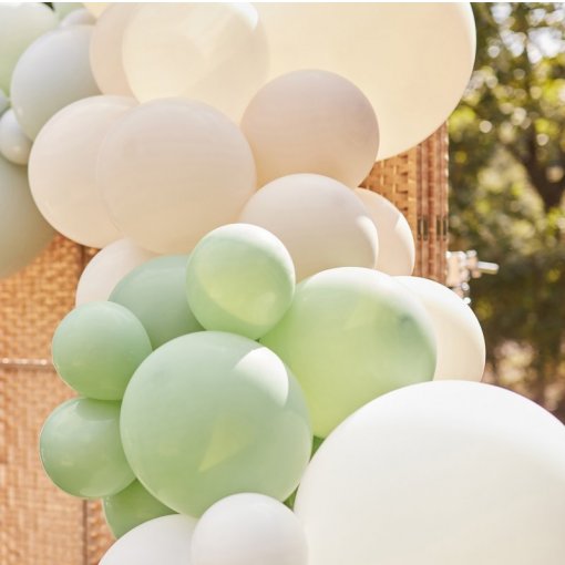 8 x 5", 6 x 12", 1 x 18" light green balloons