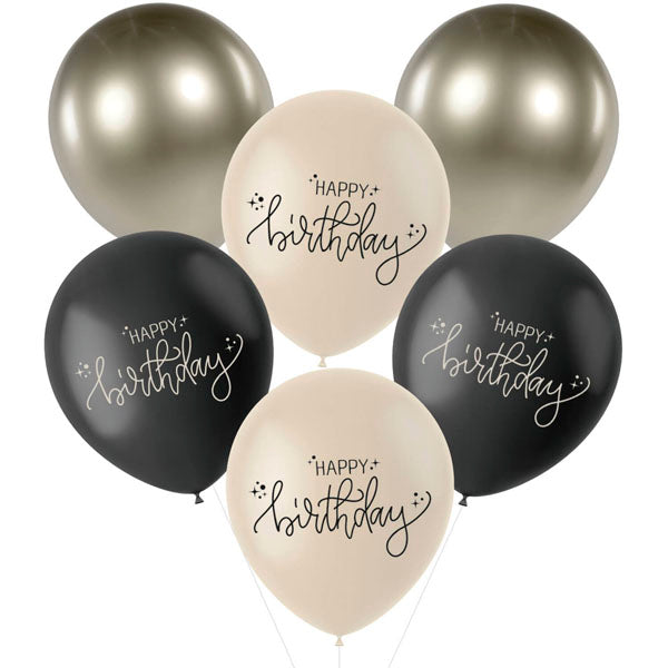 Balões Happy Birthday Creme, Preto e Dourado