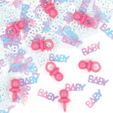 Inclui 14gr de confettis em papel brilhante com letras "BABY" e em plástico em forma de chupetas