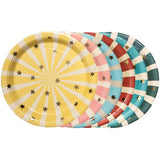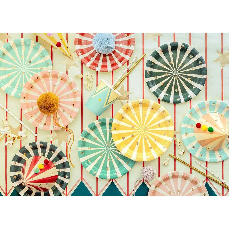Pratos de papel Circus Stripes, cores misturadas, dimensões aprox. 18 x 18 cm.